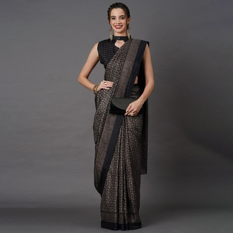 Black Printed Art Silk Saree